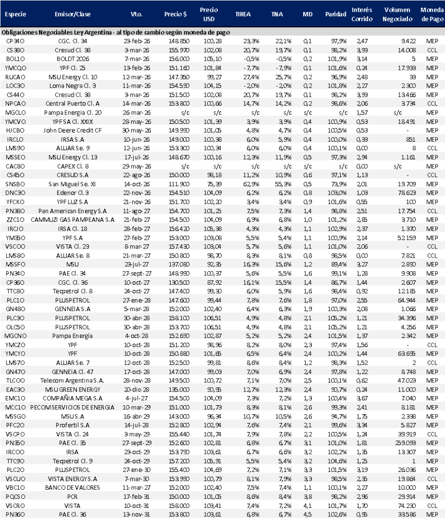 Dado el cierre de año no se registraron nuevas emisiones corporativas hard dollar en las últimas ruedas.