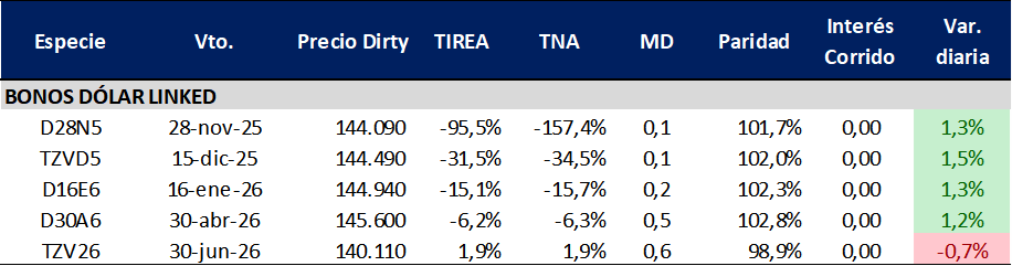 Datos al 25 de noviembre de 2025 – precios a las 13.20hs